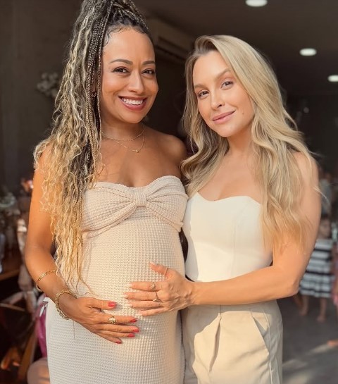 “Chá da mais nova Chiquitita”, escreveu Carla Diaz no Instagram. Aretha espera Aniki, sua primeira filha, fruto do casamento com o argentino Sebastian Goldberg.