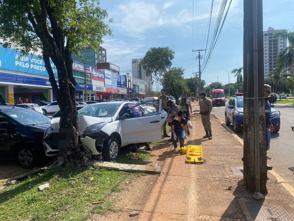 Duas mulheres sofreram acidente de carro nesta sexta-feira (20) na avenida Juscelino Kubitschek, região central de Palmas. Uma mulher de 42 anos teria perdido o controle do veículo após passar mal enquanto dirigia. O carro subiu na calçada, bateu em um banco de concreto e depois em uma árvore. A mãe da motorista estava no veículo.