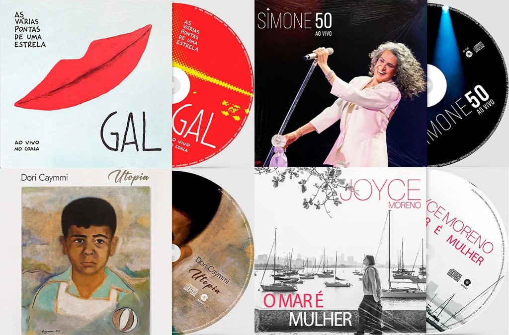Imagens promocionais de edições em CD de álbuns de Gal Costa (1945 – 2022), Simone, Dori Caymmi e Joyce Moreno