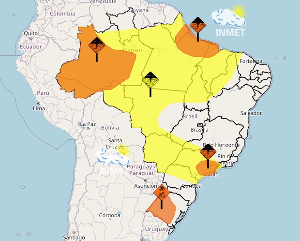 Aviso vale até a manhã desta segunda-feira (24). Segundo Inmet, podem ser registrados ventos intensos de até 60 km/h. Alerta amarelo cobre quase todo estado