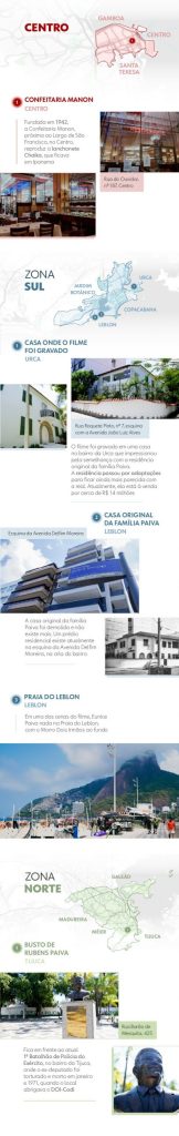 O cuidado na adaptação está presente nos detalhes. O Colégio Sion, no Cosme Velho, na Zona Sul, aparece quando Eunice está no colégio dos filhos. Foi lá, de fato, que as crianças estudaram – o nome da escola é citado no filme, que mostra a mãe conversando com uma freira sobre